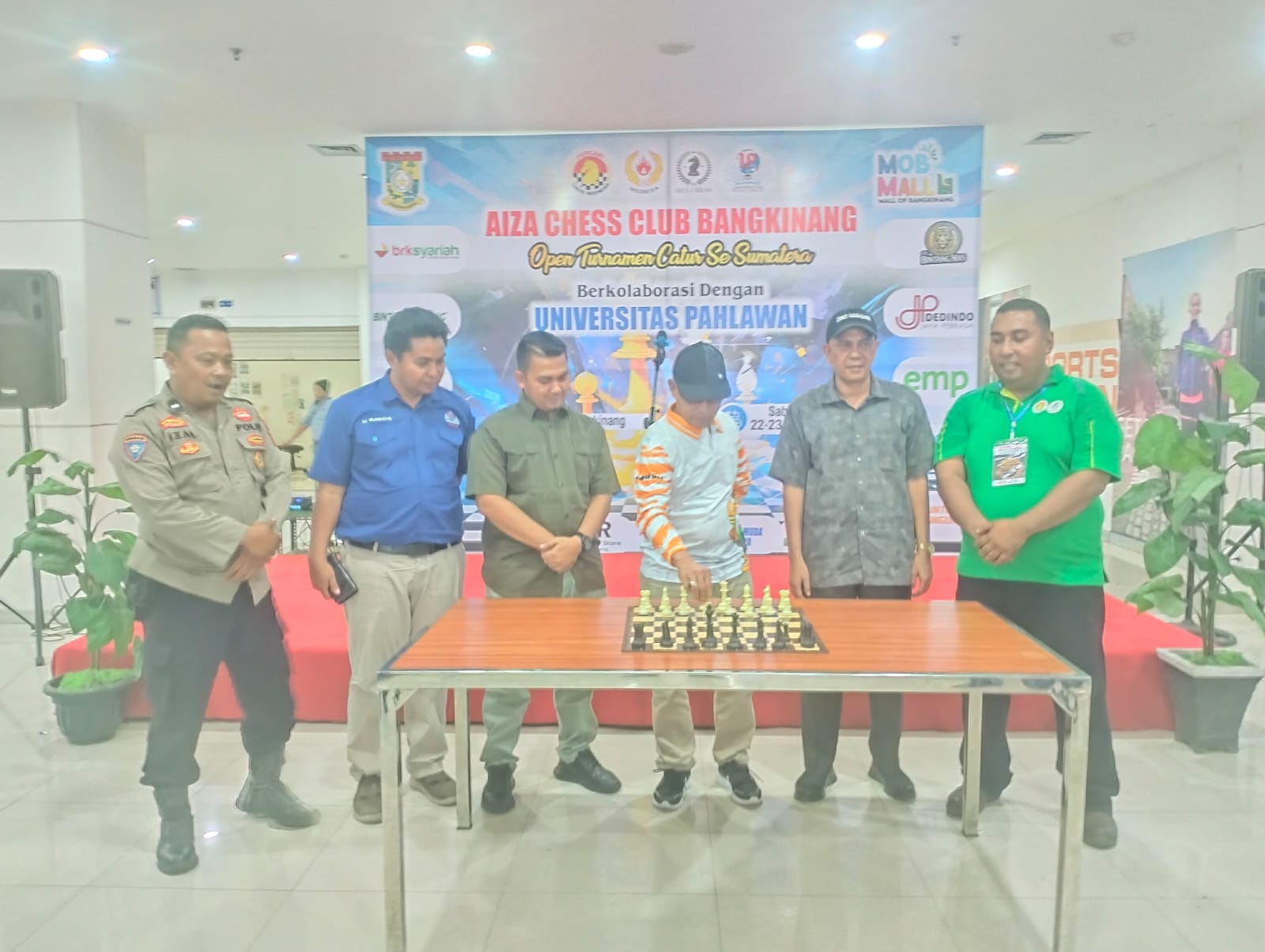 Bangkinang Kota, SuaraAura.com – Open Turnamen Catur se-Sumatera yang digelar Aiza Chess Club Bangkinang bekerja sama dengan Universitas Pahlawan (UP) Tuanku Tambusai resmi dimulai pada Sabtu (22/11/2025). Turnamen berlangsung di Plaza Bangkinang Blok A dan diikuti para pecatur terbaik dari berbagai provinsi di Sumatera.