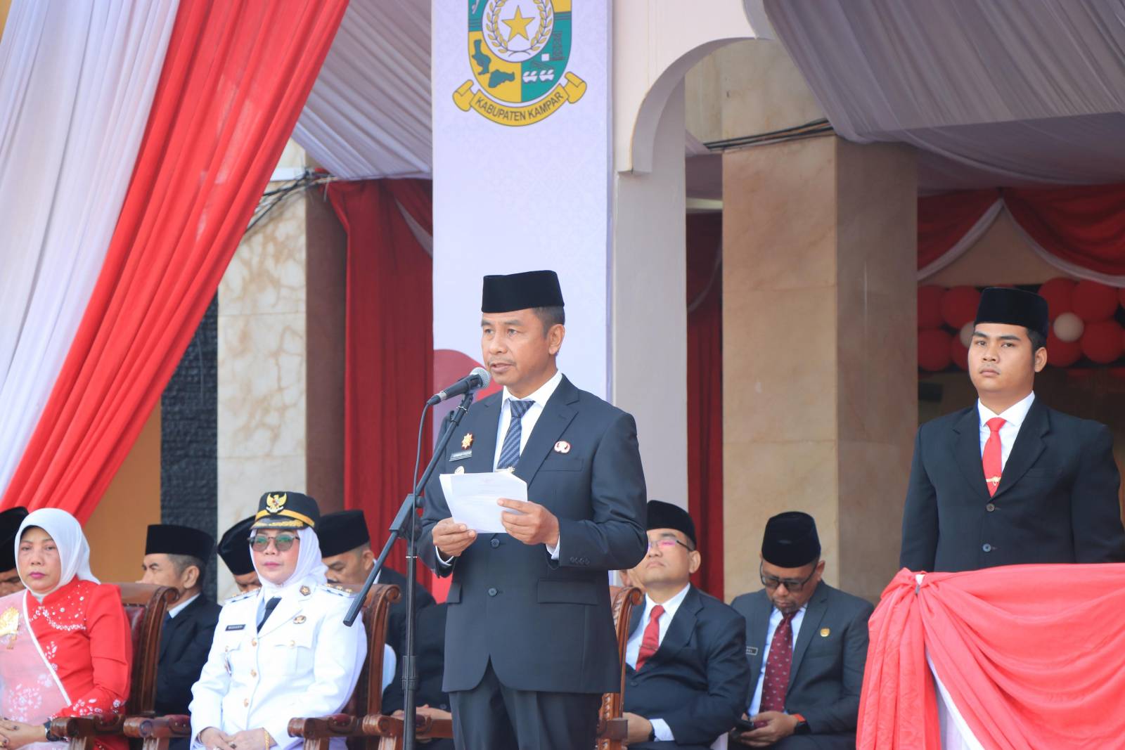 Dalam amanatnya, Bupati Kampar menyampaikan bahwa dalam memaknai hari kemerdekaan ini kita ucapkan wujud rasa syukur terhadap jasa para pahlawan yang telah mengorbankan jiwa, diri, harta bahkan nyawa untuk meraih kemerdekaan negera ini.