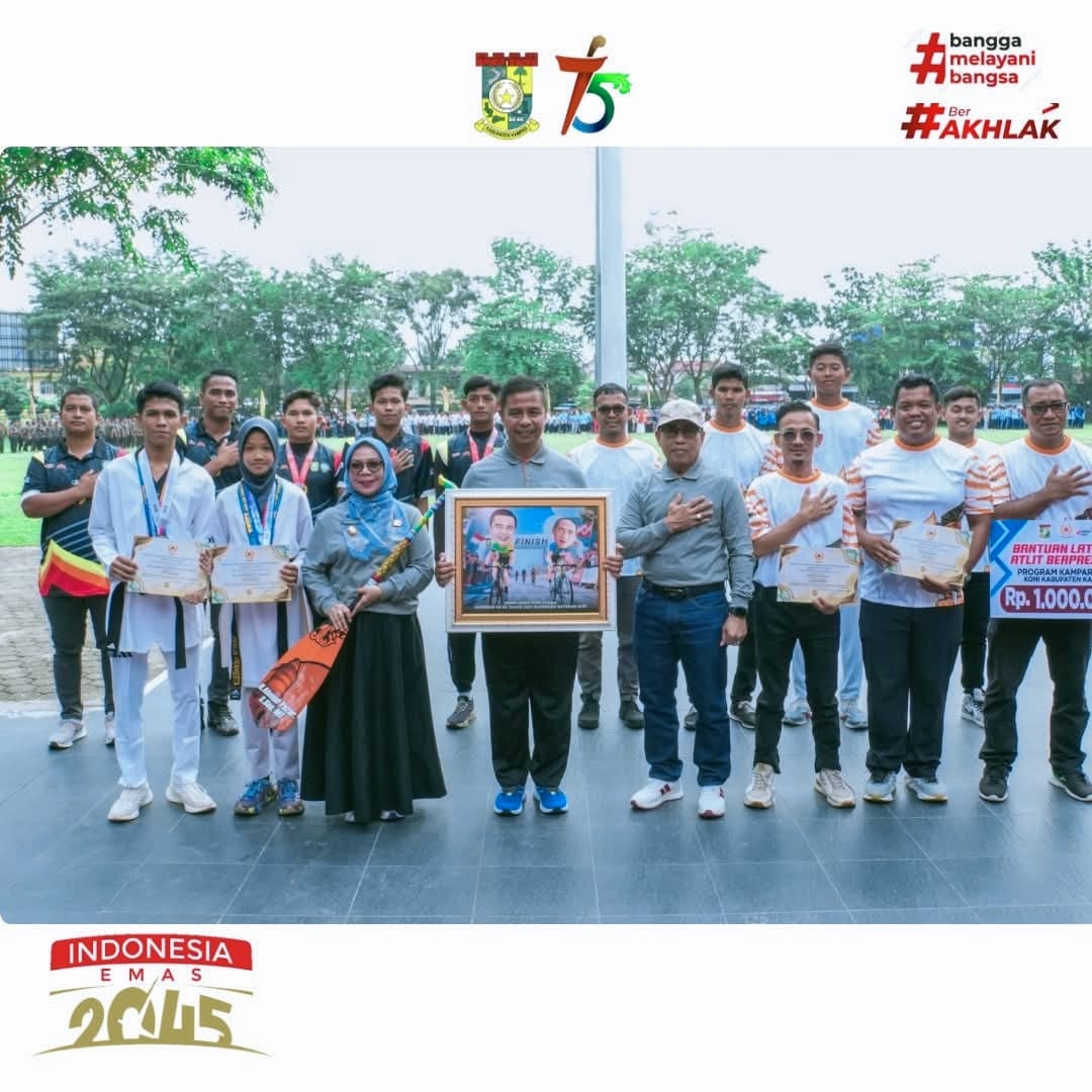 Di akhir kegiatan, Bupati Ahmad Yuzar dan Wakil Bupati Misharti menyerahkan bantuan latihan kepada para atlet berprestasi Kabupaten Kampar sebagai bentuk apresiasi sekaligus dorongan agar mereka terus bersemangat mengharumkan nama daerah di tingkat regional, nasional, maupun internasional.