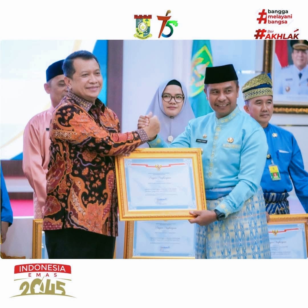 Pekanbaru, (suaraaura.com) – Bupati Kampar, Ahmad Yuzar, menerima penghargaan dalam ajang Penilaian Kinerja Penyelenggaraan Pelayanan Publik (PEKPPP) Tahun 2024 yang diselenggarakan oleh Kementerian Pendayagunaan Aparatur Negara dan Reformasi Birokrasi (PANRB). Penghargaan tersebut diserahkan langsung oleh Wakil Menteri PANRB, Purwadi Arianto, dalam sebuah acara yang digelar di Gedung Daerah Pauh Janggi, Pekanbaru, pada Kamis (7/8/2025).