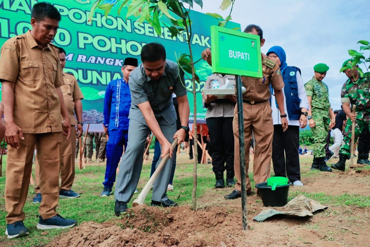 “Kerusakan hutan, perubahan iklim, banjir, dan longsor adalah akibat berkurangnya tutupan pohon. Hari ini kita menanam bukan hanya untuk memperingati Hari Pohon Sedunia, tetapi untuk memulihkan kembali apa yang hilang. Pohon harus kita rawat bersama,” tegas Bupati.