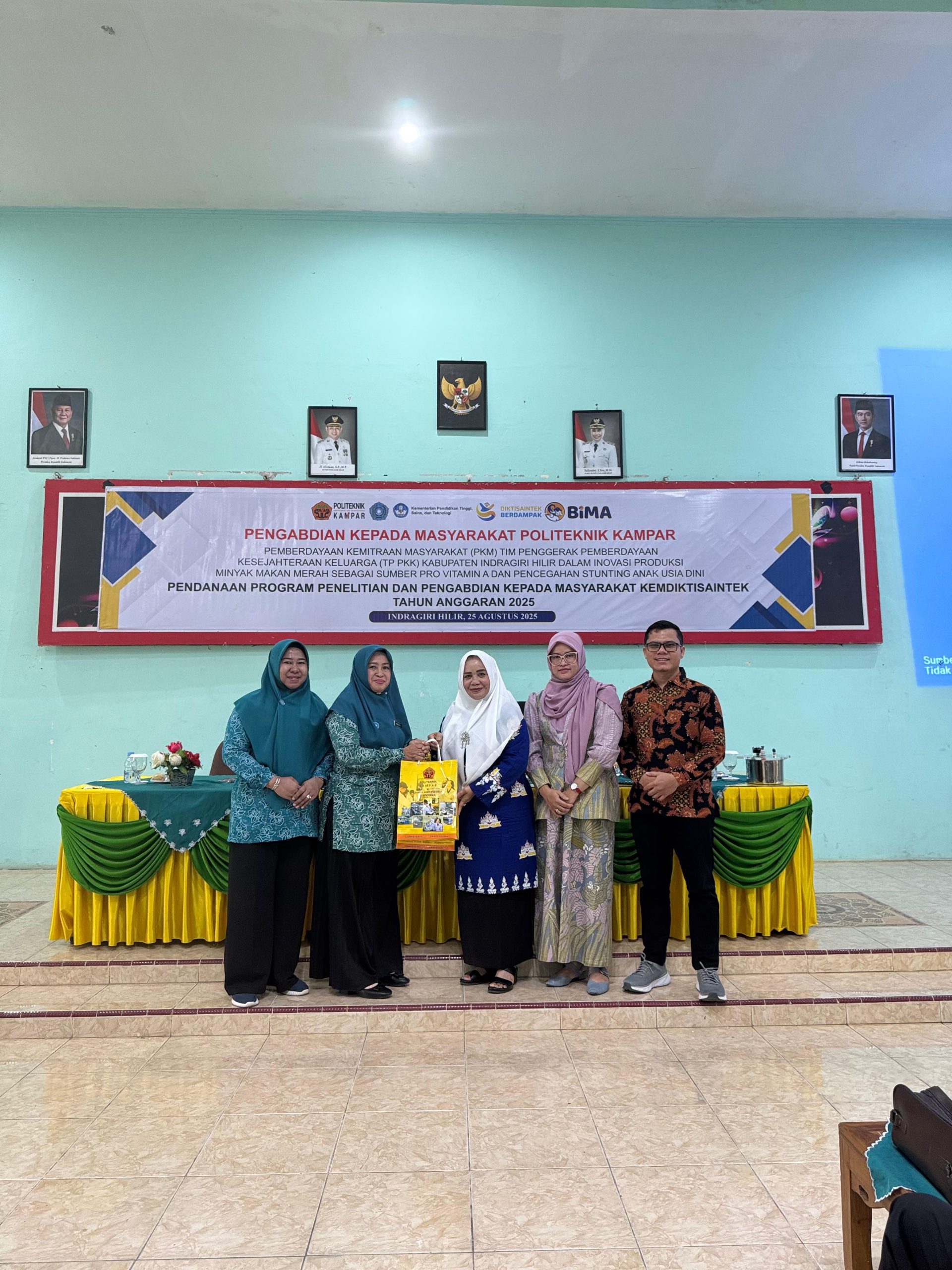 Tembilahan, SuaraAura.com – Tim Dosen Politeknik Kampar melaksanakan kegiatan Pengabdian Kepada Masyarakat (PKM), (25/08/2025) di Tembilahan, Kabupaten Indragiri Hilir. Program ini mengangkat tema “Pemberdayaan Kemitraan Masyarakat: Inovasi Produksi Minyak Makan Merah sebagai Sumber Provitamin A dan Upaya Pencegahan Stunting Anak Usia Dini.”