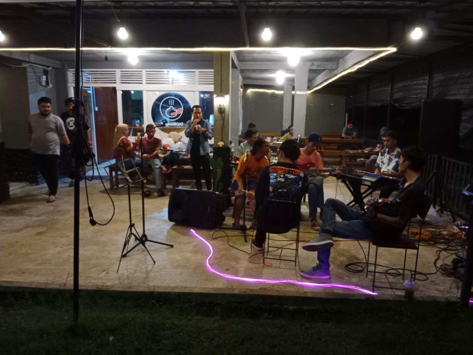 Saat Grand Opening Cafe Steamboat ini dihibur oleh Aa Iwan and Friend Aqustik Band dengan alat yang tidak kalah dengan Band lainnya di Kampar.
