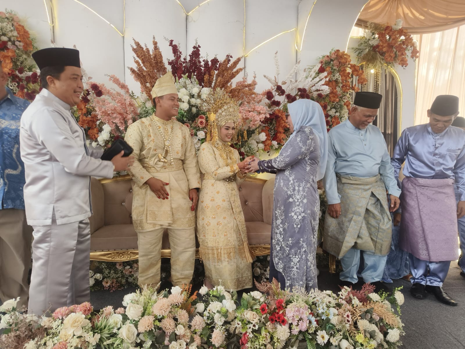Acara tersebut terasa semakin istimewa dengan kehadiran Wakil Bupati Kampar, Dr. H. Misharti S.Ag., M.Si, yang hadir langsung bersama suami tercinta dan rombongan untuk memberikan doa dan restu kepada kedua mempelai.