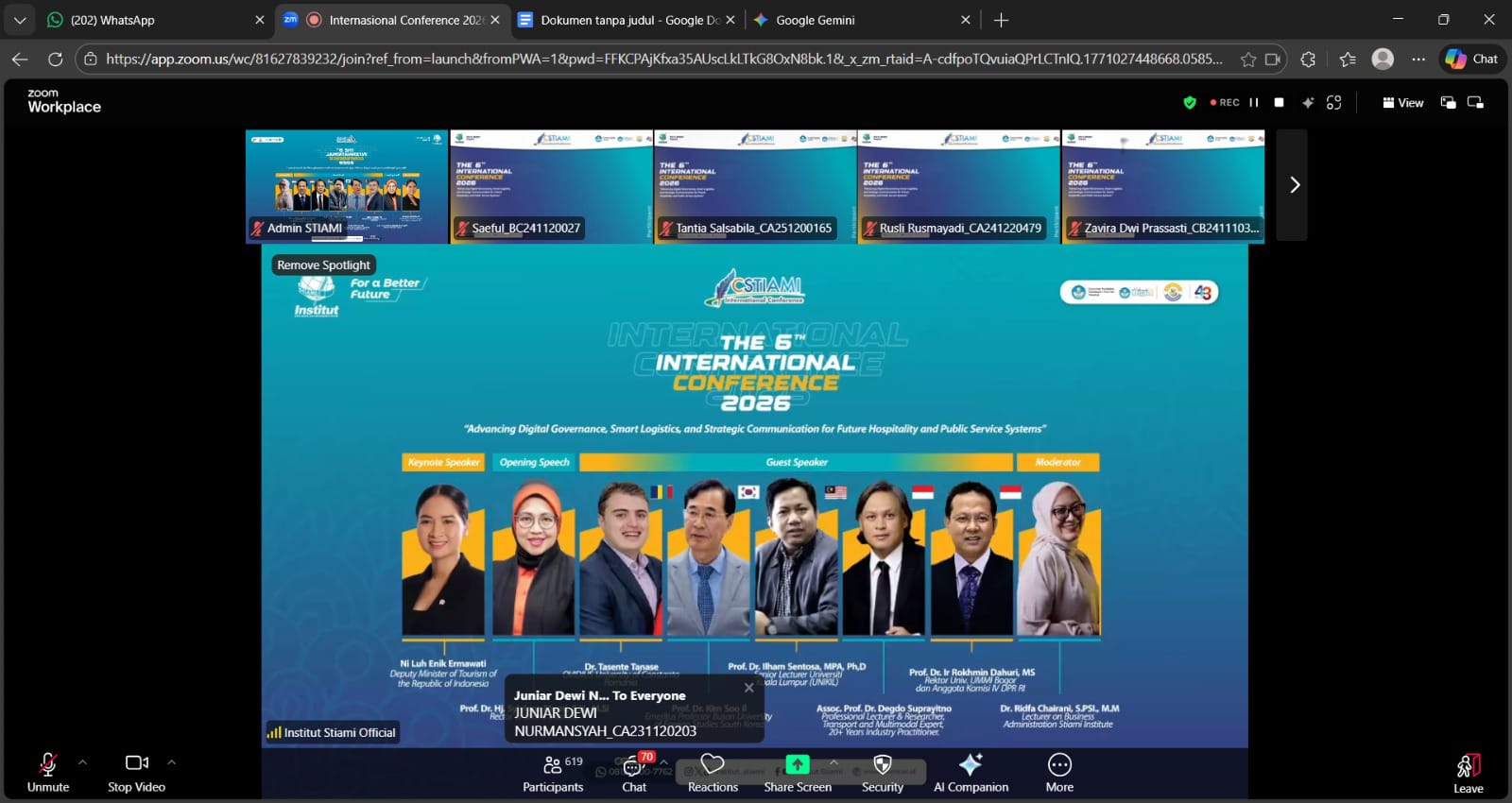 Tema yang diusung, “Advancing Digital Governance, Smart Logistics, and Strategic Communication for Future Hospitality and Public Service Systems,” merefleksikan urgensi penguatan tata kelola berbasis teknologi, integrasi sistem logistik cerdas, serta peran komunikasi strategis dalam menciptakan layanan yang efektif, adaptif, dan berkelanjutan.