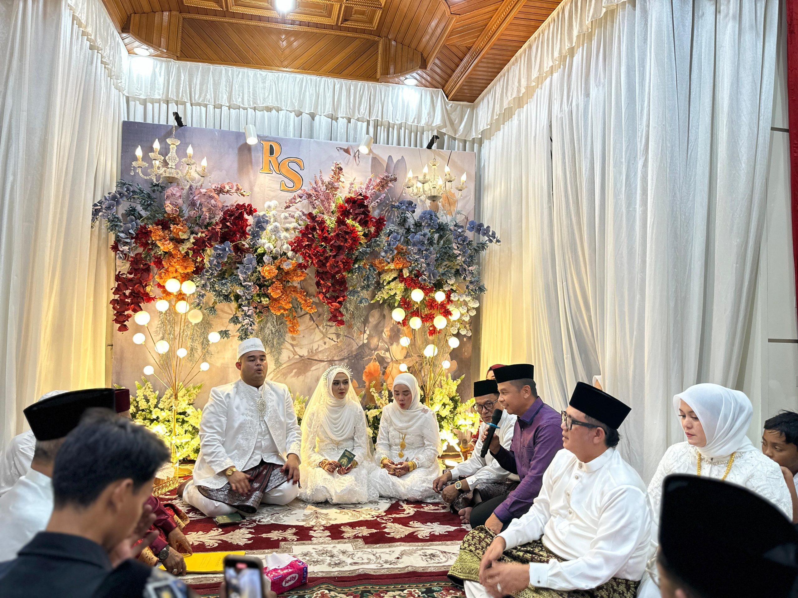 BANGKINANG KOTA, SuaraAura.com – Pernikahan pasangan M Reyhan Sabri dengan Marshanda Indriyati menjadi semakin sakral penuh khidmat dengan kehadiran Bupati Kampar H Ahmad Yuzar pada saat prosesi Ijab Kabul alias akad nikah.