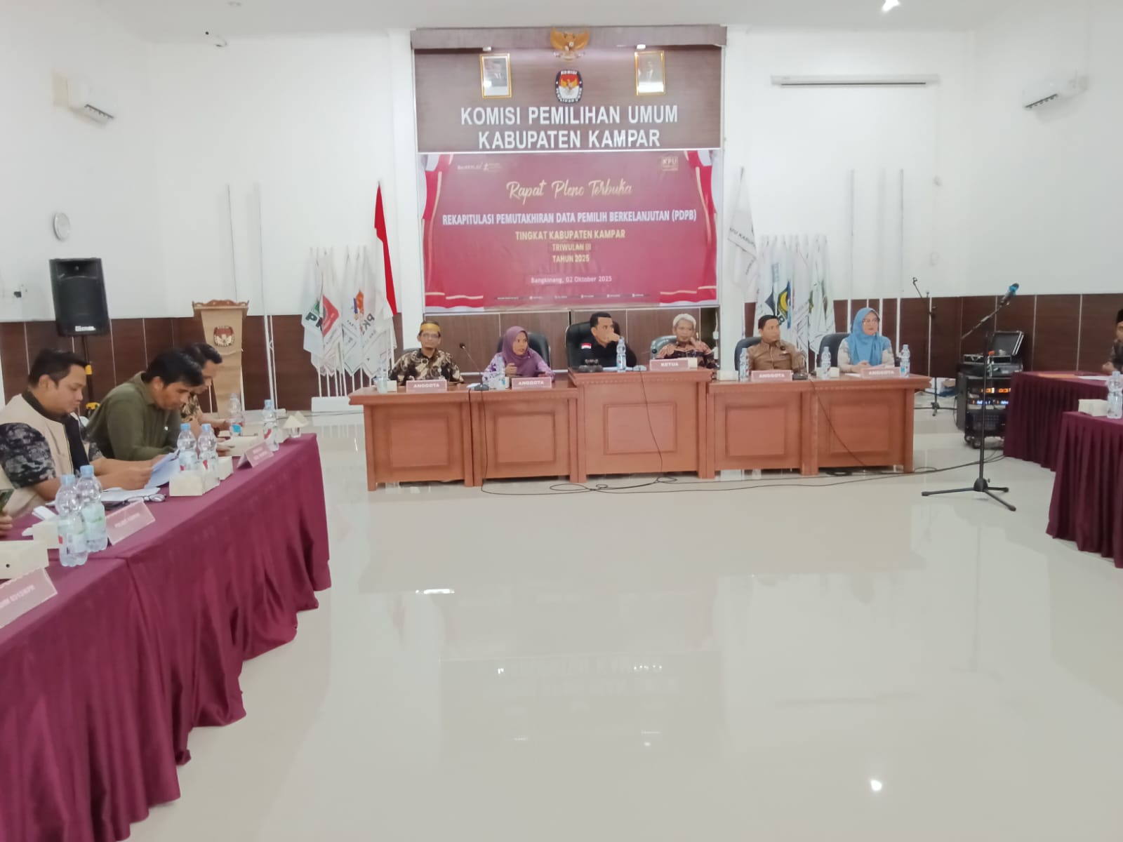 BANGKINANG KOTA, SuaraAura.com – Komisi Pemilihan Umum (KPU) Kabupaten Kampar menggelar Rapat Pleno Terbuka Rekapitulasi Pemutakhiran Data Pemilih Berkelanjutan (PDPB) Tingkat Kabupaten Kampar pada Triwulan III Tahun 2025, Kamis (02/0/10/2025) siang hingga sore ini.