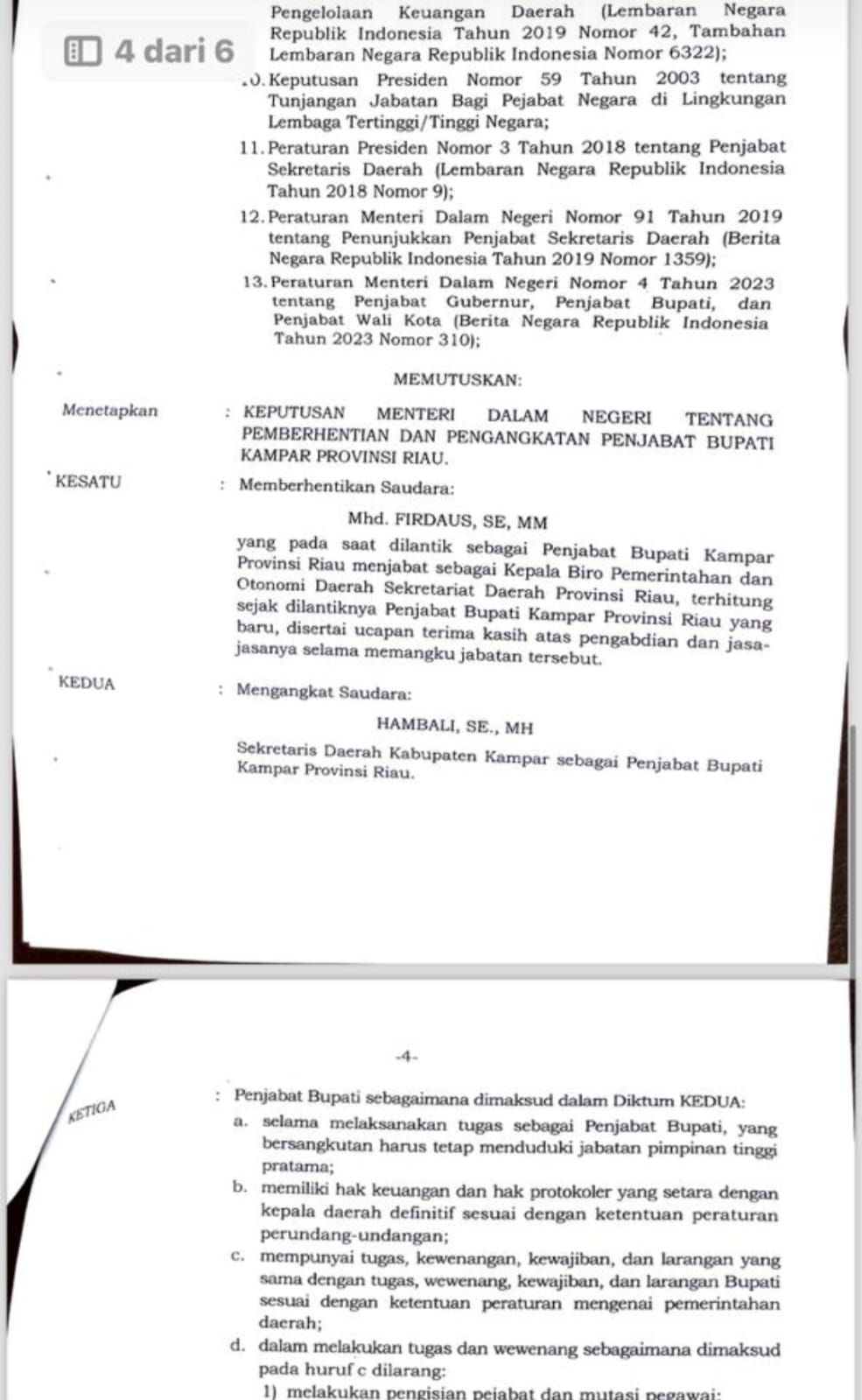 Sementara itu, Sekda Kabupaten Kampar, Hambali, SE., MH saat dihubungi melalui seluler pribadinya, 081268898XXX kepada wartawan membenarkan tentang informasi tersebut. (Adi Jondri)