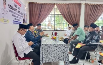 Pj Bupati Kampar berbaur bersama masyarakat pecinta bola dan duduk bersila dilantai karpet aula bersama masyarakat.
