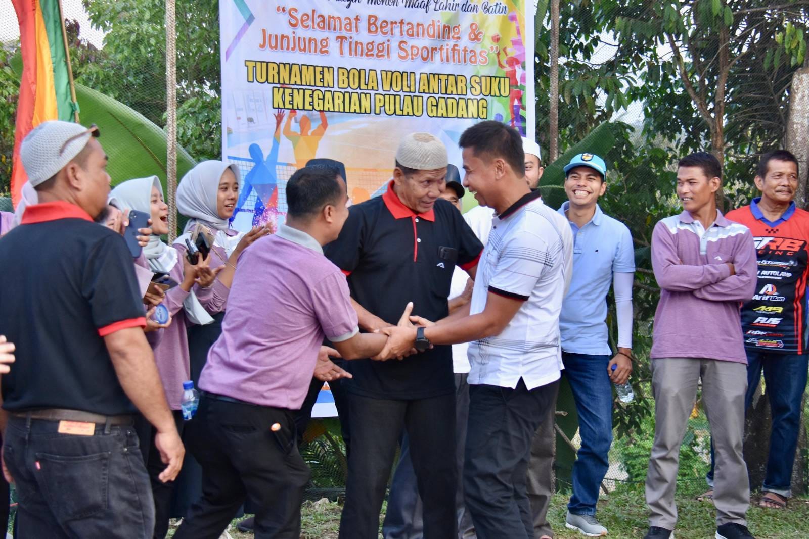 Mari kita bersatu membangun negeri secara Bersma sama, seluruh komponen masyrakat mulai dari Anak kemanakan, Ninik Mamak, tokoh maayrakat, tokoh agama dan pemerintahan mulai dari Kepala Desa, Kecamatan bahkan Kabupaten” Pinta Ahmad Yuzar sembari mengucapkan basmalah pertanda dibukanya turnamen bola Voli antar suku Kenegerian Pulau Gadang.