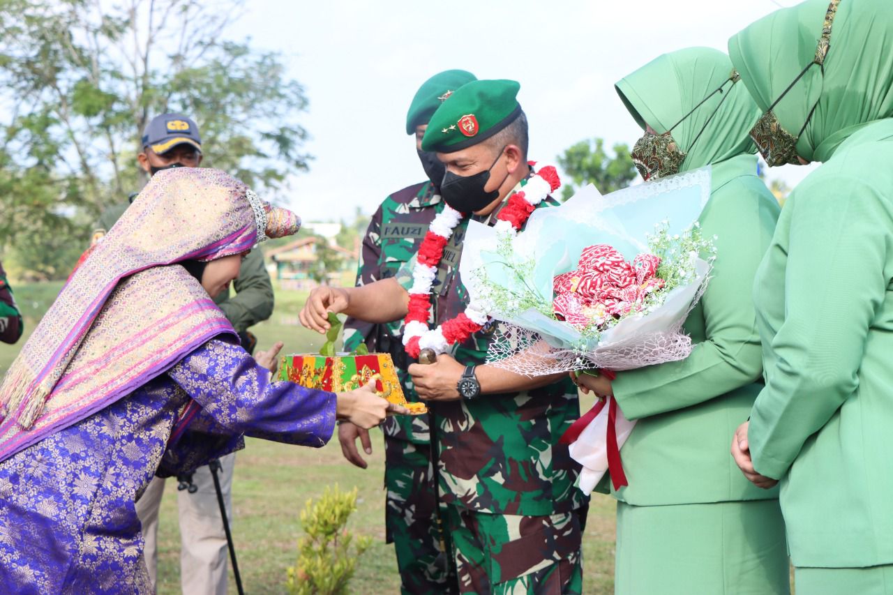 Hadir mendampingi kedatangan Pangdam I/BB Mayjen TNI Achmad Daniel Chardin antara lain Danrem 031/WB Brigjen TNI Parlindungan Hutagalung beserta istri, Asintel Kasdam beserta istri, Ass. Ops Kasdam beserta istri dan Aster Kasdam beserta istri.