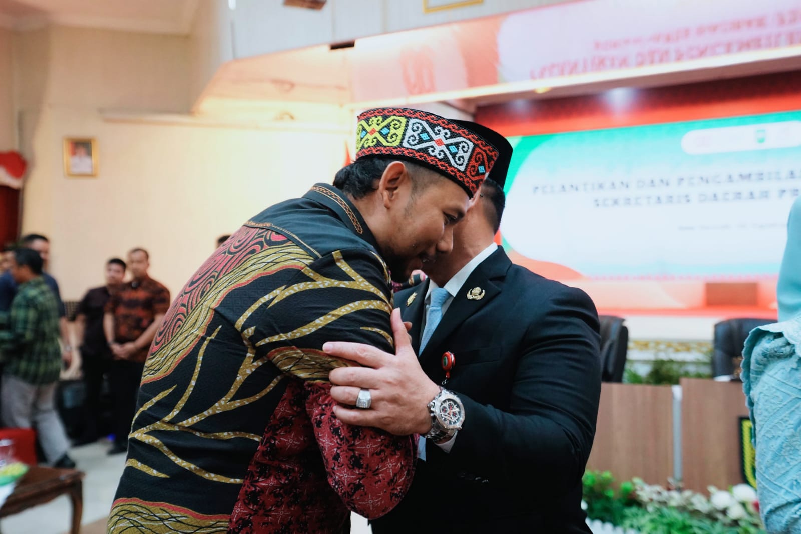 Ketua Fraksi PKB Kampar Raja Ferza Fakhlevi usai pelantikan tersebut juga menyalami dan memberikan ucapan selamat kepada Dr H Syahrial Abdi kerena telah resmi menjabat Sekdaprov Riau.