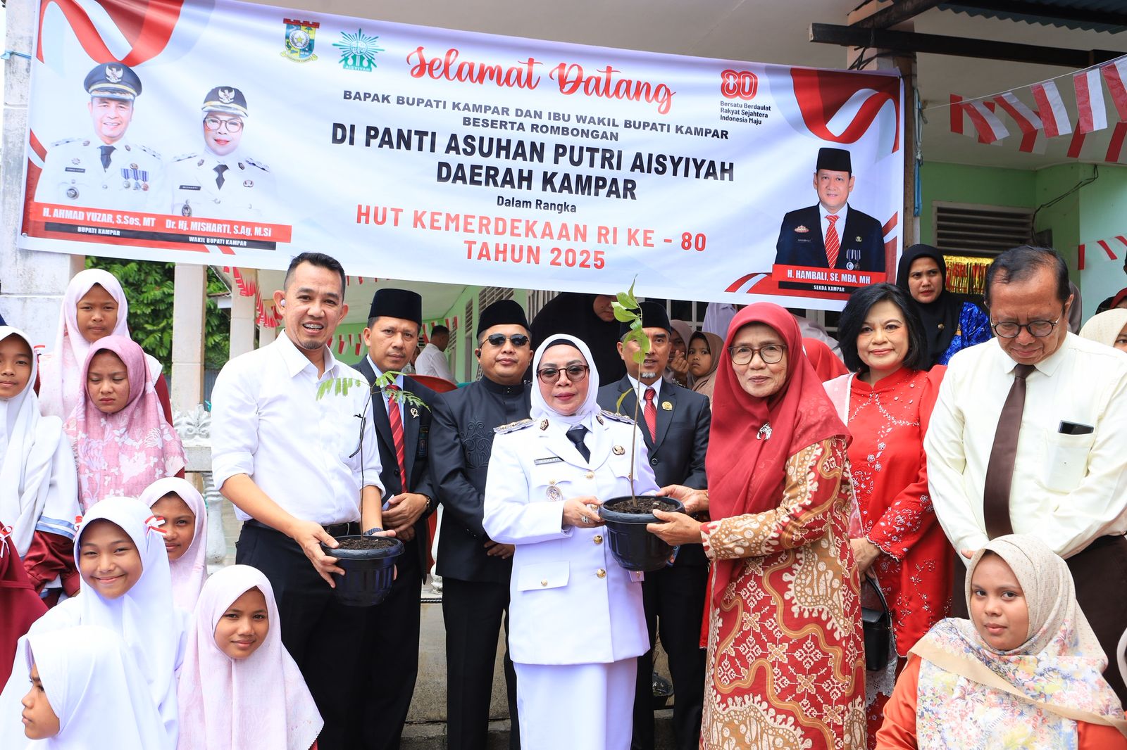 Bangkinang Kota, SuaraAura.com – Dalam rangka memperingati Dirgahayu Republik Indonesia Ke 80 Tahun 2025, usai pelaksanaan Upacara Detik-Detik Proklamasi dan Penaikan Sang Merah Putih, Wakil Bupati Kampar Dr. Misharti, S.Ag, M.Si langsung lakukan kegiatan anjang sana dengan menyambangi Panti Asuhan Putri Aisyiyah Kecamatan Bangkinang Kota bersama Forkopimda Kabupaten Kampar yang diantaranya adalah Ketua DPRD Kabupaten Kampar Ahmad Taridi, SH.i, Kepala Kejaksaan Negeri Kampar Dwianto Prihartono SH, dan Kepala Pengadilan Agama Bangkinang Dr. Hasan Nul Hakim, SH.i, MA, Staf Ahli Bupati Kampar, para Asisten Setda Kampar dan Pimpinan OPD di lingkungan Pemerintah Kabupaten Kampar, bertempat di Aula Panti Asuhan Aisyiyah Bangkinang Kota pada Minggu (17/8).