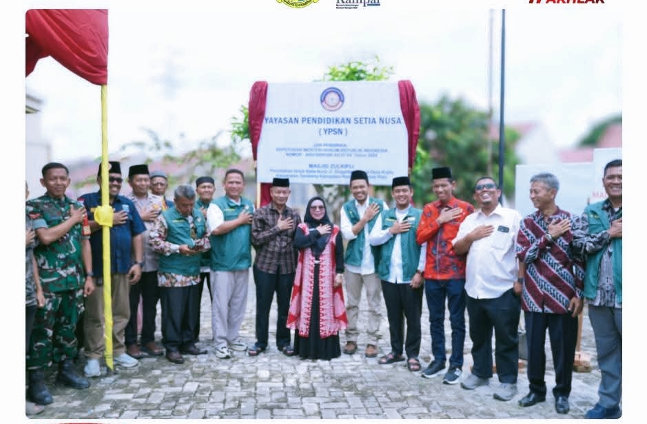 Tambang, SuaraAura.com – Wakil Bupati Kampar, Dr. Hj. Misharti, S.Ag., M.Si, meresmikan Yayasan Pendidikan Setia Nusa (YPSN) dan melakukan peletakan batu pertama atas pembangunan Madrasah Diniyah Takmiliyah Awaliyah (MDTA), Minggu (19/04). Kegiatan yang dipusatkan di Lapangan Masjid Zulkifli, Desa Kualu, Kecamatan Tambang ini juga dibalut dengan acara Halal bi Halal bersama seluruh masyarakat RT 10 dan RT 12.